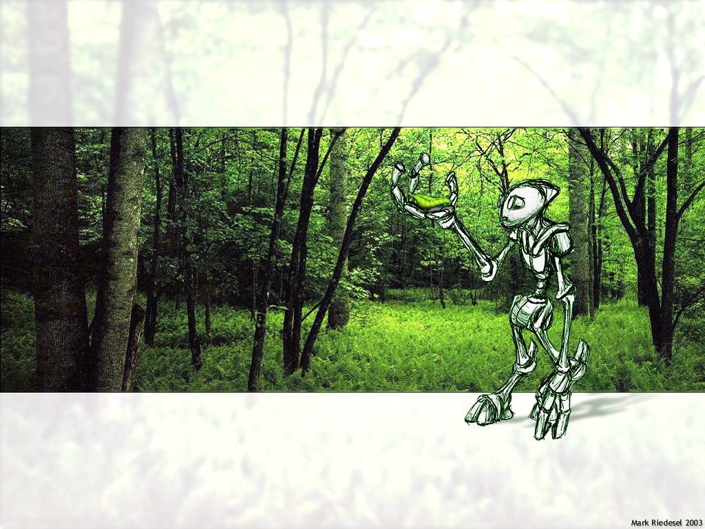 Strange little sketch of a robot a did while I was at work, so I threw him on a nice forest photo and put a little leaf in his hand. A lot of people really like this one, including myself.